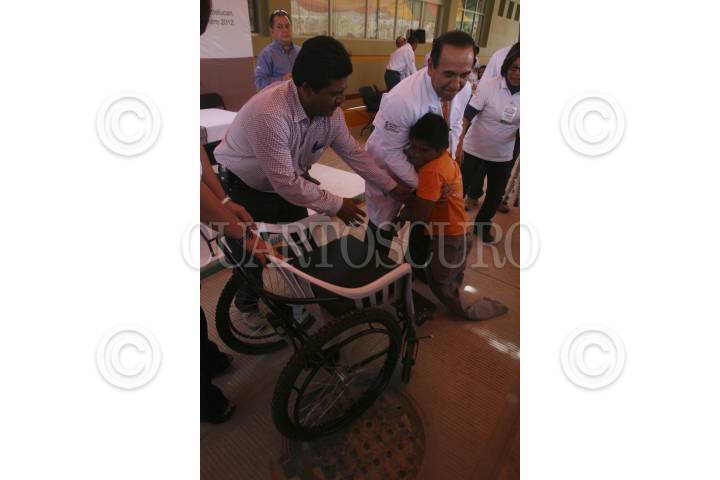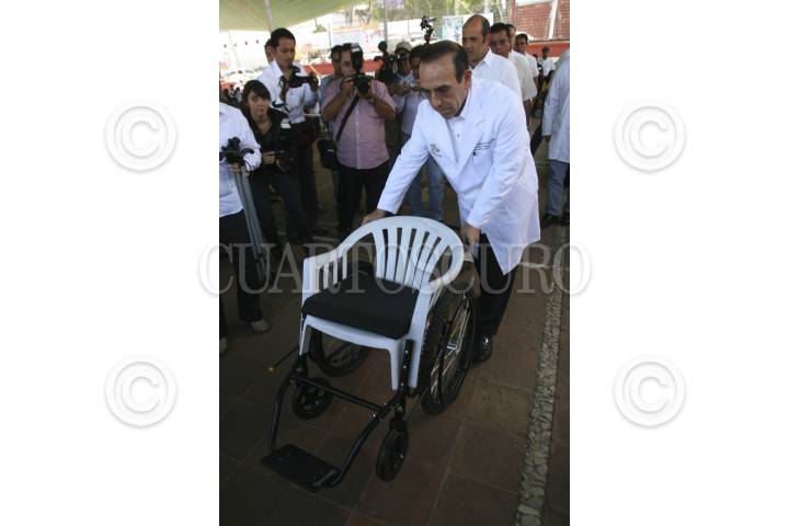 OAXACA, OAXACA, 29AGOSTO2012.- El pasado mes de febrero el secretario de Salud de Oaxaca (SSO), Germán Tenorio Vasconcelos entregó en el Hospital de la Paz de Teojomulco y Texmelucan once sillas de ruedas "hechizas" a mismo numero de personas, días después entregó otros sillas en la agencia municipal de San Juan Chapultepec de la capital del Estado. FOTO: ARTURO PÉREZ ALFONSO /CUARTOSCURO.COM