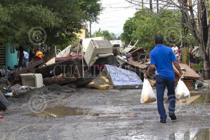 SAN NICOLÁS DE LOS GARZA, NUEVO LEÓN, 05SEPTIEMBRE2019.- Más de 30 casas resultaron afectadas por el desbordamiento del arroyo Topo Chico, debido a las lluvias provocadas por la Tormenta Tropical "Fernand" que arribó a Tamaulipas y Nuevo León el martes por la noche. Las familias afectadas fueron evacuadas de sus casas la noche del miércoles. Los niveles de agua alcanzaron más del metro de altura en algunos puntos. FOTO: GABRIELA PÉREZ MONTIEL /CUARTOSCURO.COM