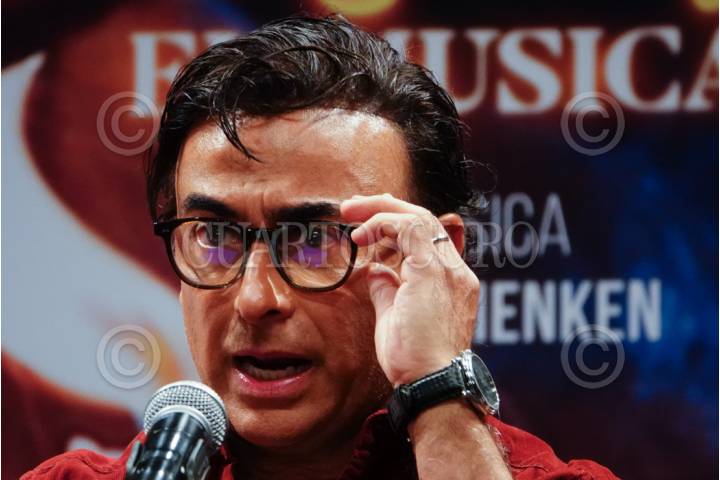 CIUDAD DE MÉXICO, 07NOVIEMBRE2023.- Adal Ramones durante la conferencia de la obra musical Cuentos de Navidad, protagonizada por el conductor mexicano, quien dará vida al pápale de Ebenezer Scrooge. Dicha obra iniciará sus presentaciones a partir del 8 de Diciembre en el Teatro San Rafael. FOTO: ROGELIO MORALES /CUARTOSCURO.COM