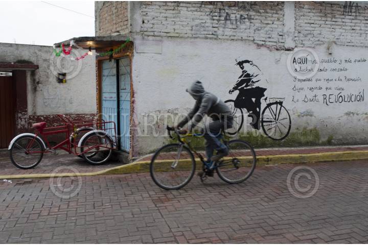 SAN SALVADOR ATENCO, ESTADO DE MÉXICO, 14SEPTIEMBRE2014.- Los mototaxis y bicicletas son el medio principal de transporte en San Salvador Atenco, que en náhuatl significa “en la orilla del agua”, fue en 2006 lugar de una serie de enfrentamientos violentos entre la Policía Federal Preventiva y militantes del Frente de Pueblos en Defensa de la Tierra. FOTO: MARÍA JOSÉ MARTÍNEZ /CUARTOSCURO.COM