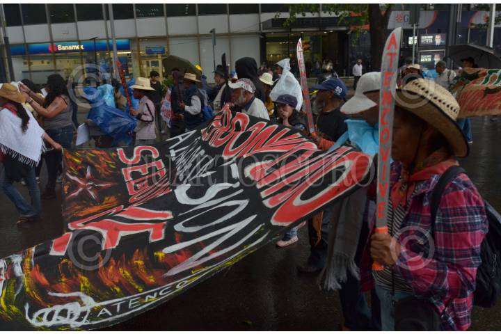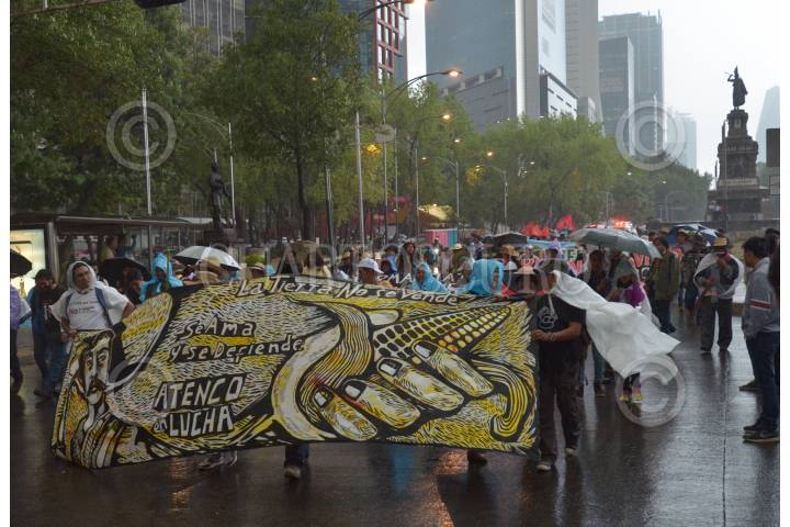 MÉXICO, D.F., 18SEPTIEMBRE2014.- Pobladores de San Salvador Atenco marcharon del Ángel de la Independencia al Tribunal Agrario en protesta por la construcción del nuevo Aeropuerto en Texcoco. FOTO: ENRIQUE ORDÓÑEZ /CUARTOSCURO.COM