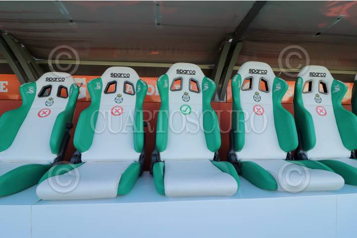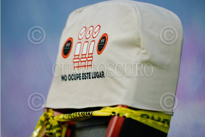 Bancas clausuradas en Estadio Corona, para guardar la sana distancia. Esta tarde se celebró albergó el partido entre el Santos vs Cruz Azul.