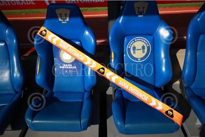 Espacios clausurados para conservar la sana distancia por la pandemia de Covid-19 en el Estadio Olímpico Universitario.
