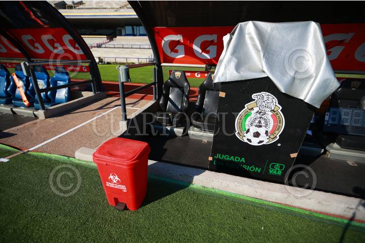 Señalamientos para respetar la sana distancia en el Estadio Azteca, en donde el día de ayer se celebró el encuentro entre el Cruz Azul vs Querétaro.