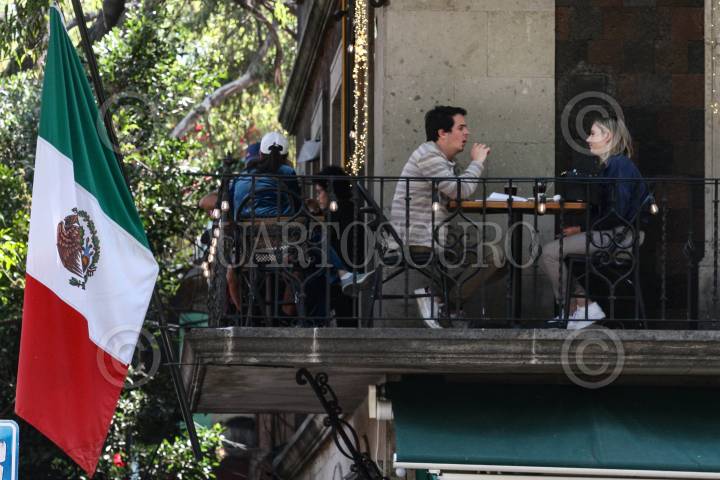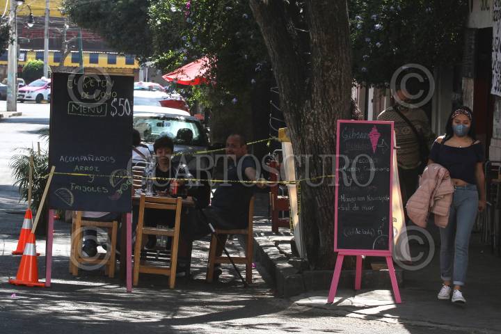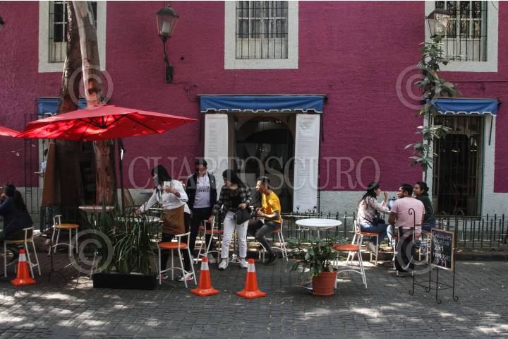 Restaurante de Coyoacán, utiliza parte de la calle para sus clientes.