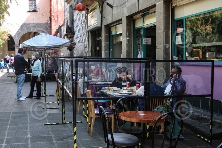 Con micas de separación, restaurante des centro de Coyoacán, opera bajo la nueva normalidad.