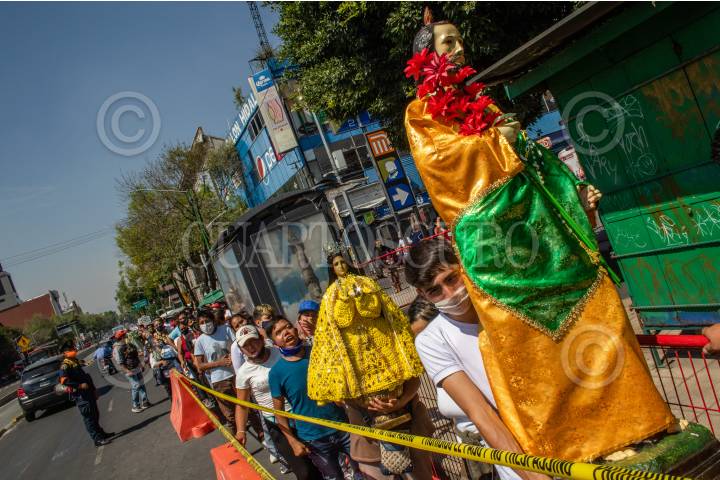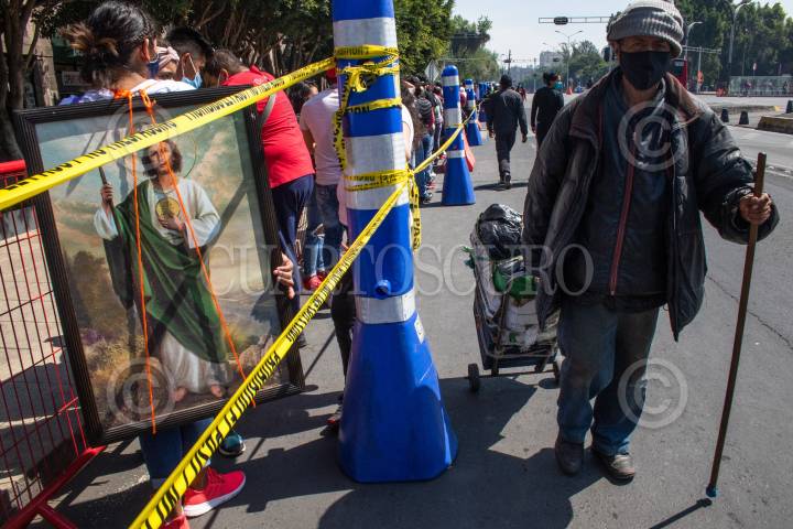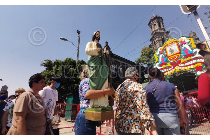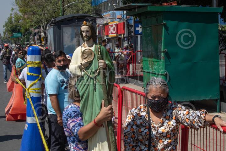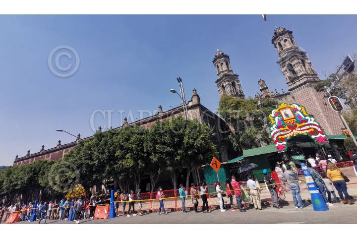 Cientos de creyentes de San Judas Tadeo esperaron cerca de una hora para ingresar al templo de San Hipólito, el día de mañana es la celebración anual de este santo, autoridades de la iglesia anunciaron que permanecerá cerrado para evitar aglomeraciones, además de que la ciudad esta en alerta por la pandemia de Covid-19.