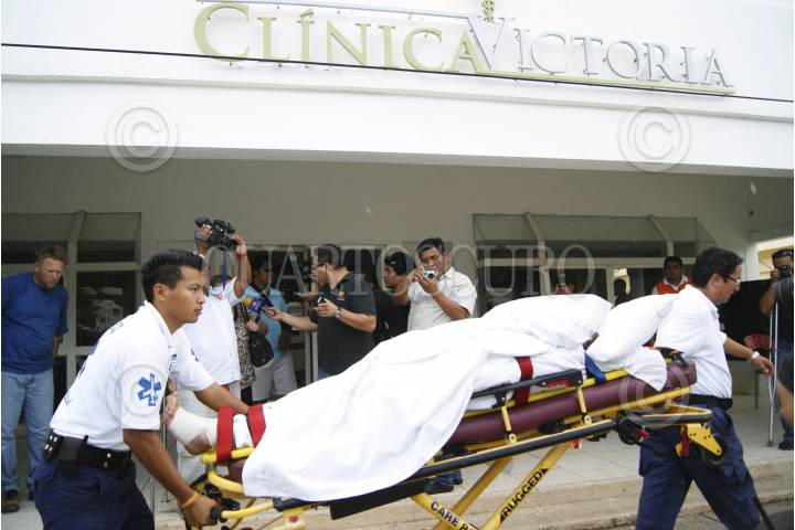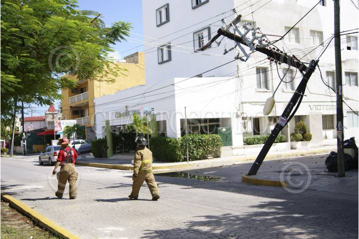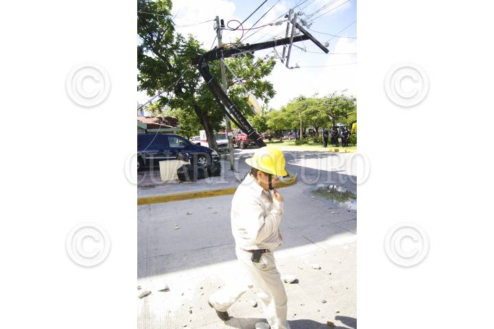CANCÚN, QUITANA ROO, 24OCTUBRE2012.- Una explosión en la azotea de la Clinica Victoria, ubicada sobre la avenida Sunyaxchen en la super manzana 25, movilizo a los cuerpos policíacos, al igual que a los bomberos. El reporte se dio después de las 12:30 hrs de este día, al lugar llegaron elementos de protección civil, seguridad pública, bomberos, y una cuadrilla de la Comisión Federal de Electricidad, debido a que un poste se daño dejando sin luz a varias manzanas. Tres personas fueron trasladadas a diferentes sanatorios debido a que la clínica se quedó sin electricidad. FOTO: CSPHOTO /CUARTOSCURO.COM
