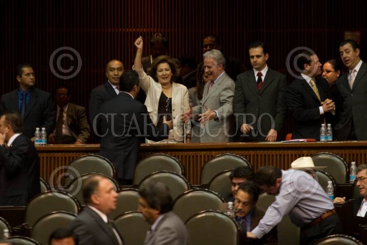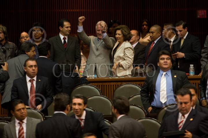 MÉXCO D.F., 07OCTUBRE2010.- Diputados del PRD, donde se voto la Ley General para Prevenir y Sancionar los Delitos en Materia de Secuestro, que fue aprobada durante la sesión en la Cámara de Diputados. FOTO: GUILLERMO PEREA/CUARTOSCURO.COM