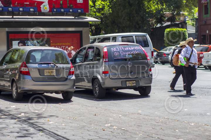 MEXICO, D.F, 16MARZO2014.- Vecinos de Coyoacán se han manifestado en contra de la instalación de parquímetros en la colonia Santa Anita, pues afirman que esta medida daña el patrimonio cultural y afecta para la vida cotidiana de los habitantes de esta colonia, en la que se ubica el ayuntamiento más antiguo de América. FOTO: DAVID POLO /CUARTOSCURO.COM