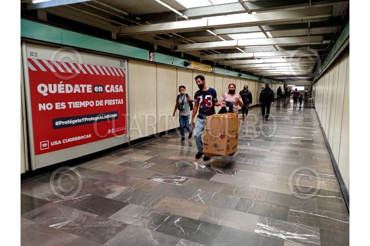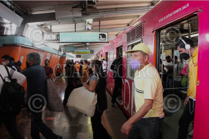 Usuarios del metro capitalino, tras reapertura de la línea 4 que corree de Martín Carrera a Santa Anita.
