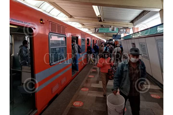 Decenas de personas esperan la llegada del metro, tras reapertura de la Línea 4.