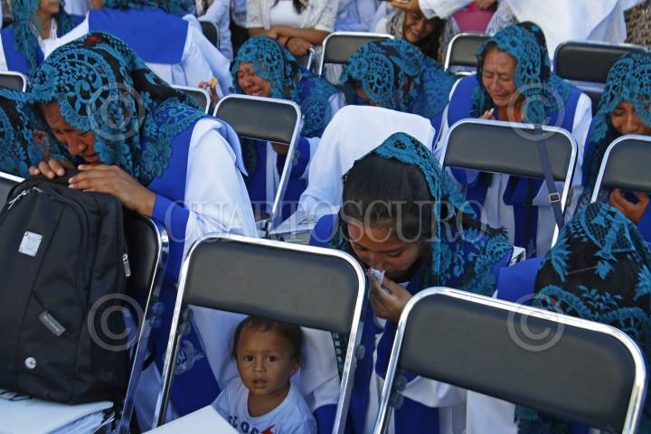 Fieles de la Luz del Mundo durante la celebración de la Santa Cena, en el marco de la edición 85 de la Santa Convocación 2023.