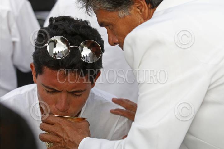 GUADALAJARA, JALISCO 14AGOSTO2017.- Naasón Joaquín García, Dios vivo de la Iglesia de la Luz del Mundo, encabezó el ritual mas importante de su religión, “La Santa Cena”, esto en el marco de la Santa Convocación 2017, hoy en la "Hermosa Provincia" lugar a donde se dieron cita mas de 500 mil personas de diversas partes del mundo. FOTO: FERNANDO CARRANZA GARCÍA /CUARTOSCURO.COM