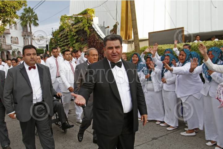 GUADALAJARA, JALISCO 14AGOSTO2018.- Naasón Joaquín García, Dios vivo de la Iglesia de la Luz del Mundo, encabezó el ritual mas importante de su religión, “La Santa Cena”, esto en el marco de la Santa Convocación 2018, que se celebra en la "Hermosa Provincia" y sedes aledañas a donde se dieron cita mas de 500 mil personas de diversas partes del mundo. FOTO: FERNANDO CARRANZA GARCÍA /CUARTOSCURO.COM