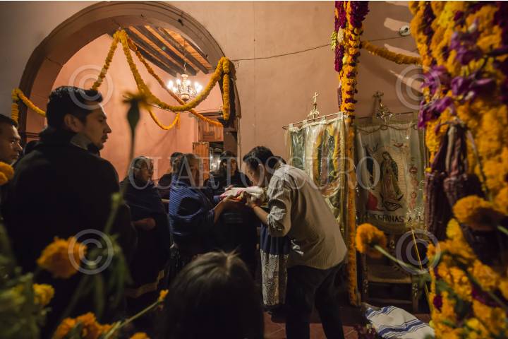 QUIROGA, MICHOACÁN, 02NOVIEMBRE2016.- En el pueblo de Santa Fe de la Laguna, las casas de los que murieron el ultimo año son adornadas por familiares con altares e imágenes y flores de cempasúchil en toda la casa para recibir a los difuntos, que se deleitarán con lo que se ha sido depositado en su memoria y se supone era lo que más les gustaba en vida, segun las creencias. FOTO: ALAN ORTEGA /CUARTOSCURO.COM