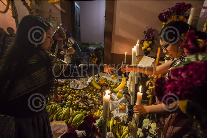 Familias que perdieron a un ser querido este año realizaron un altar en su honor dentro de sus casas en donde colocaron flores, fotos, fruta, una cruz y veladoras; durante su recibimiento, la familia ofrece comida a los vecinos y turistas, y los vecinos que acuden a visitar el altar llevan ofrenda ya sea comida o una veladora