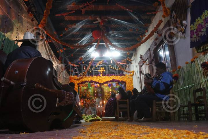 QUIROGA, MICHOACÁN, 02NOVIEMBRE2016.- En el pueblo de Santa Fe de la Laguna, las casas de los que murieron el ultimo año son adornadas por familiares con altares e imágenes y flores de cempasúchil en toda la casa para recibir a los difuntos, que se deleitarán con lo que ha sido depositado en su memoria y se supone era lo que más les gustaba en vida, segun las creencias. FOTO: ALAN ORTEGA /CUARTOSCURO.COM