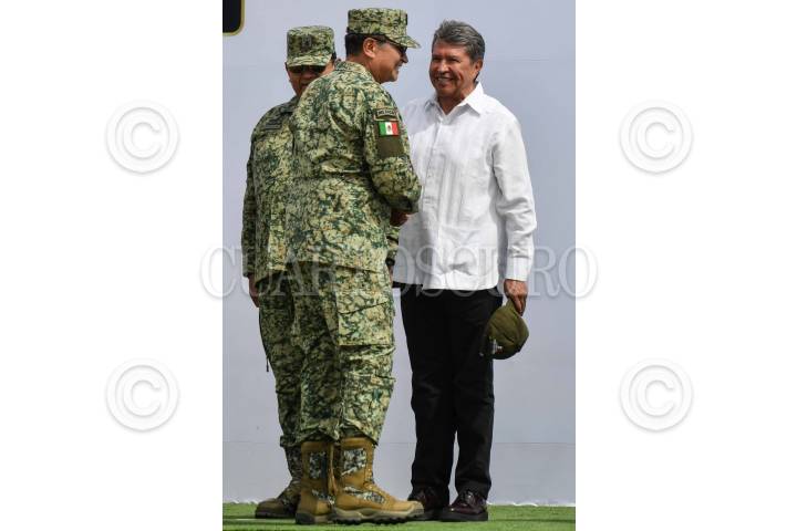 Luis Cresencio Sandoval, secretario de la Defensa Nacional, y Ricardo Monreal, senador de Morena, durante el acto protocolario de los Ejercicios finales de Seguridad Pública y Seguridad Interior por parte de elementos de la Guardia Nacional en el Centro Nacional de Adiestramiento.