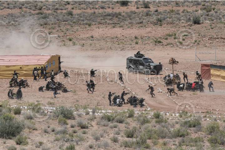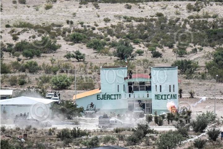 SANTA GERTRUDIS, CHIHUAHUA, 14JUNIO2023.- Ejercicios finales de Defensa Nacional de la cuarta y quinta fase de Adiestramiento del Agrupamiento Conjunto " por parte de elementos del ejército mexicano, en el Centro Nacional de Adiestramiento. El ejercicio consistió en hipótesis de reacción del ejército ante una invasión armada extranjera en territorio nacional. FOTO: MARIO JASSO/CUARTOSCURO.COM