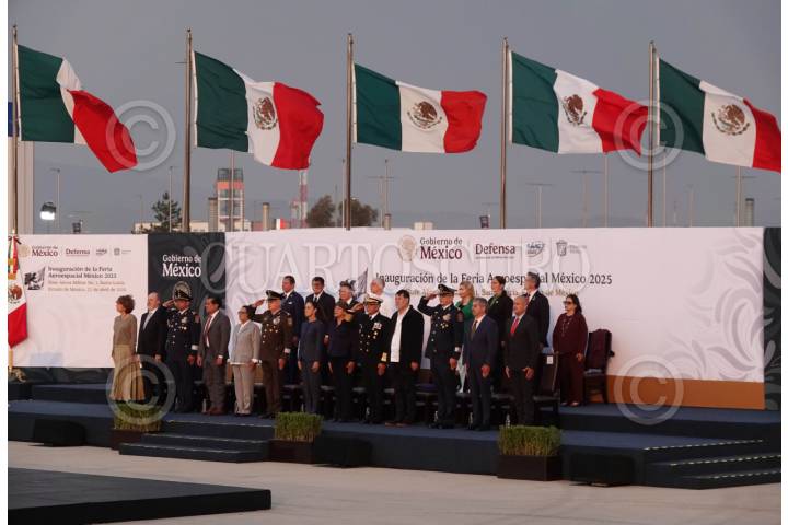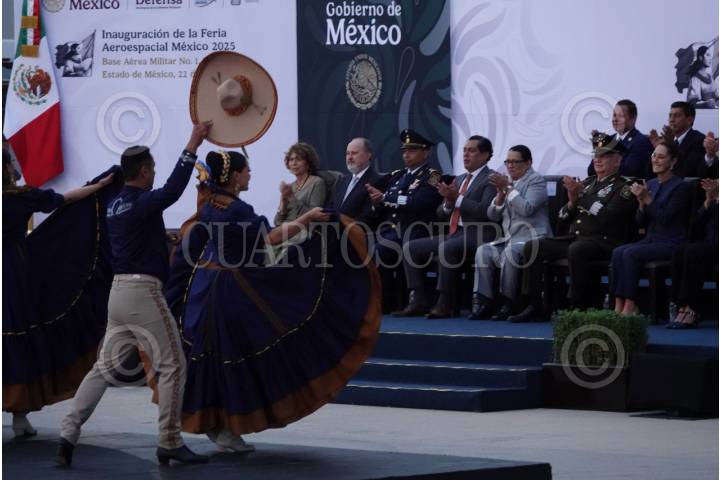 ZUMPANGO, ESTADO DE MÉXICO, 22ABRILO2025.- Claudia Sheinbaum, presidenta de México, encabezó la inauguración de la Feria Aeroespacial Mexicana (FAMEX) 2025 en las inmediaciones de la Base Aérea de Santa Lucía. FOTO: GALO CAÑAS/CUARTOSCURO.COM