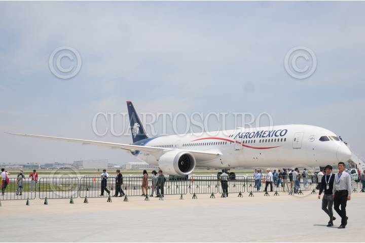 Una aeronave de Aeromexico es expuesta durante la feria.