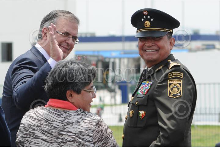 Marcelo Ebrard, canciller mexicano y el secretario de Defensa, Luis Cresencio Sandoval, durante la ceremonia de inauguración.