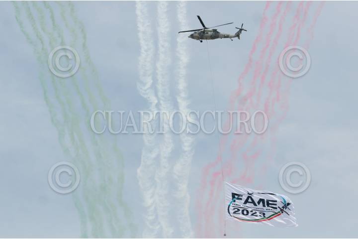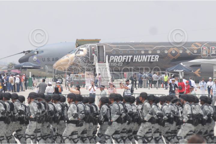 Distintas aeronaves son expuestas sobre una de las pistas de la base militar como parte del Famex 2023.