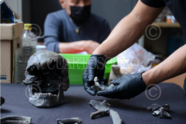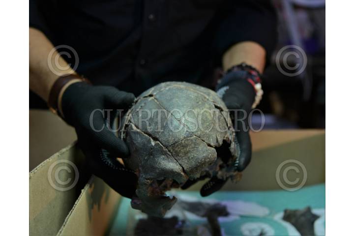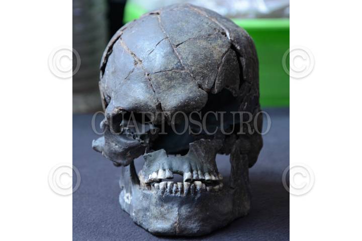 SANTA LUCÍA, ESTADO DE MÉXICO, 18JUNIO2024.- Desde 1984, cuando se localizó el cráneo del Hombre de Chimalhuacán en un predio de dicho municipio, en la Cuenca de México no se han descubierto restos humanos de precerámicos, es decir, de las poblaciones más antiguas que habitaron nuestro territorio, antes de la invención de la cerámica. Las exploraciones en el yacimiento de Santa Lucía durante la construcción del Aeropuerto Internacional Felipe Ángeles (AIFA) podrían poner nuevamente a esta región, la cual fue un hito en la prehistoria mexicana en las décadas de 1940 y 1960, en el mapa de estudios de la evolución humana con el descubrimiento de “Yotzin” (único, en lengua náhuatl), un esqueleto colectado en 80 por ciento de su totalidad y el cráneo semicompleto, cuyas características morfológicas y antropométricas, presumiblemente, corresponden a un individuo de finales del Pleistoceno e inicios del Holoceno, hace 10,000 años antes del presente. Lo anterior es dado a conocer por el equipo multidisciplinario del Instituto Nacional de Antropología e Historia (INAH), órgano de la Secretaría de Cultura del Gobierno de México, que lleva a cabo esta investigación, encabezada por el arqueólogo Rubén Manzanilla López, y que suma al biólogo Lauro González Quintero, al geólogo Antonio Flores Díaz, a la arqueóloga Patricia Dolores Cázares Rodríguez y al antropólogo físico Jorge Arturo Talavera González. FOTO: INAH/CUARTOSCURO.COM