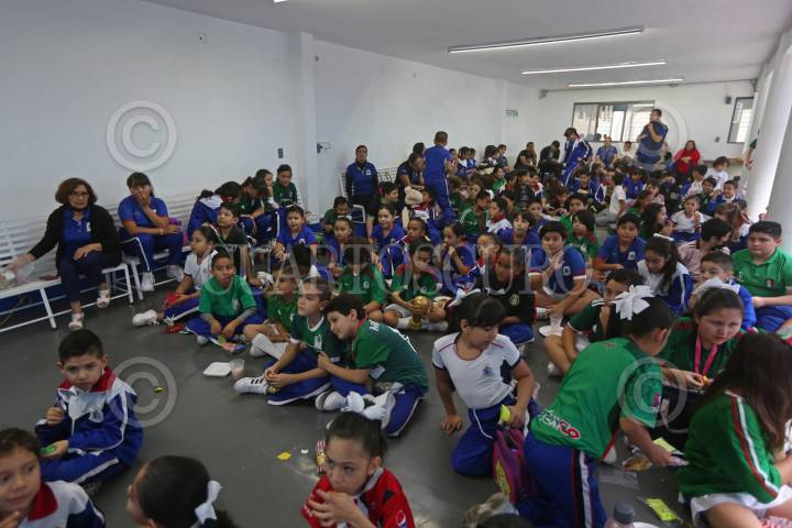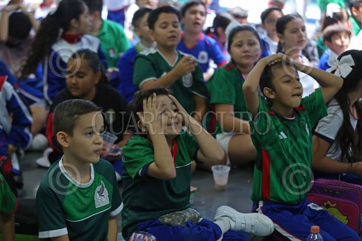 Alumnos del Colegio Santa Mónica, durante la transmisión del juego de la selección de México contra su similar de Polonia en su debut en la Copa Mundial Qatar 2022.