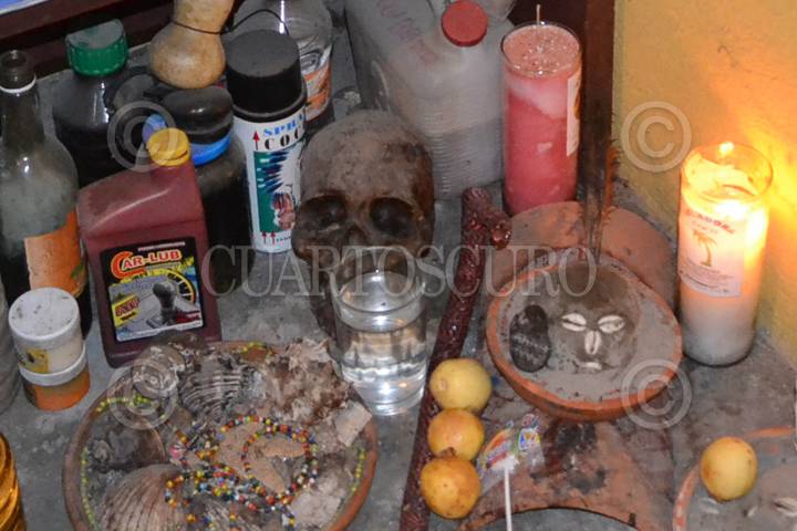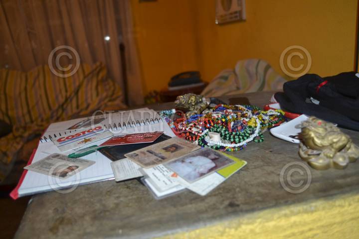 ECATEPEC, ESTADO DE MÉXICO; 28MAYO2014.- Trece personas, presuntos secuestradores , fueron asegurados por la policía Municipal en coordinación con Ejercito Mexicano, luego de que estos, secuestraran a una menor de 12 años a la que sustrajeron de su domicilio ubicado en la colonia Ejidos de Ecatepec. Así mismo, fue asegurado un domicilio, tres vehículos en los que pretendían huir y que llevaban de “muro”. Los presuntos delincuentes, fueron puestos a disposición en el Ministerio Publico de esta demarcación. En dicho domicilio asegurado, fueron halladas varias autopartes y velas expuestas a un cráneo y santos diversos propios de la santería. FOTO: LUIS CARBAYO /CUARTOSCURO.COM