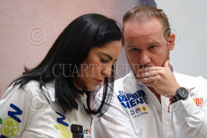 CIUDAD DE MÉXICO, 27MAYO2024.- Lía Limón, candidata a la alcaldía de Álvaro Obregón, y Santiago Taboada, candidato a Jefe de Gobierno, conversaron durante una conferencia de prensa realizada en el Holiday Inn-Mexico Plaza Universidad. FOTO: GRACIELA LÓPEZ /CUARTOSCURO.COM