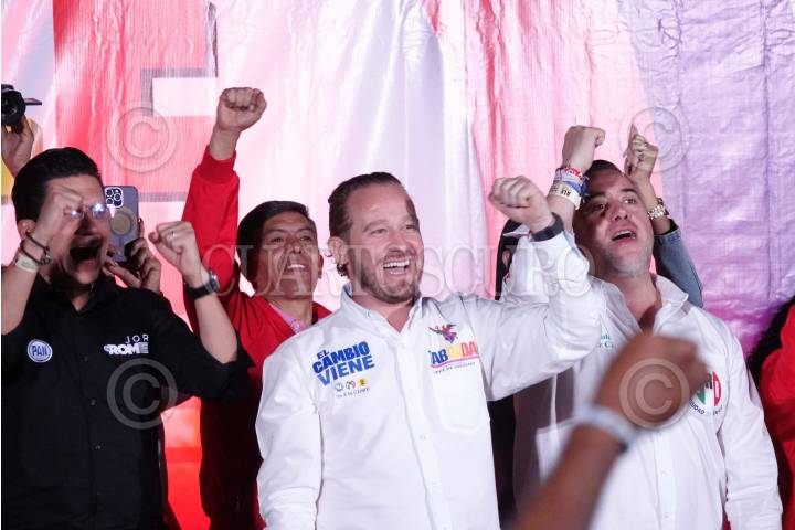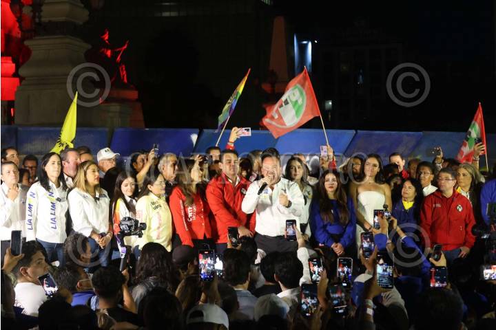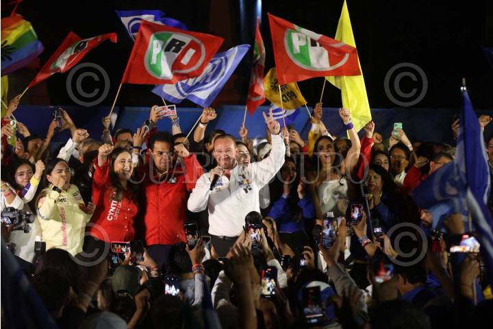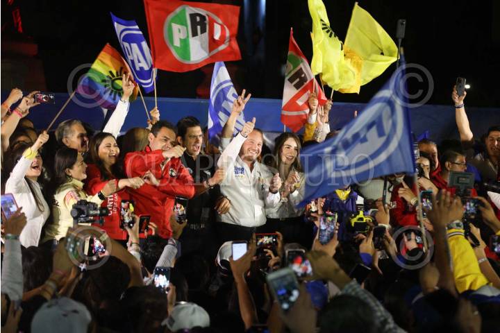 CIUDAD DE MÉXICO, 29MAYO2024.- Santiago Taboada, candidato a Jefe de Gobierno, acompañado de candidatos por la coalición PRI-PAN-PRD durante su cierre de campaña en el Ángel de la Independencia. FOTO: GRACIELA LÓPEZ /CUARTOSCURO.COM