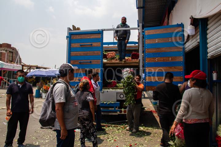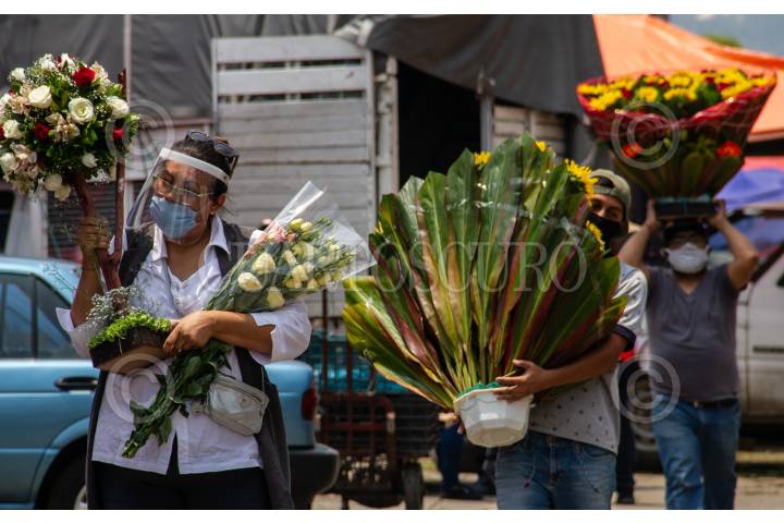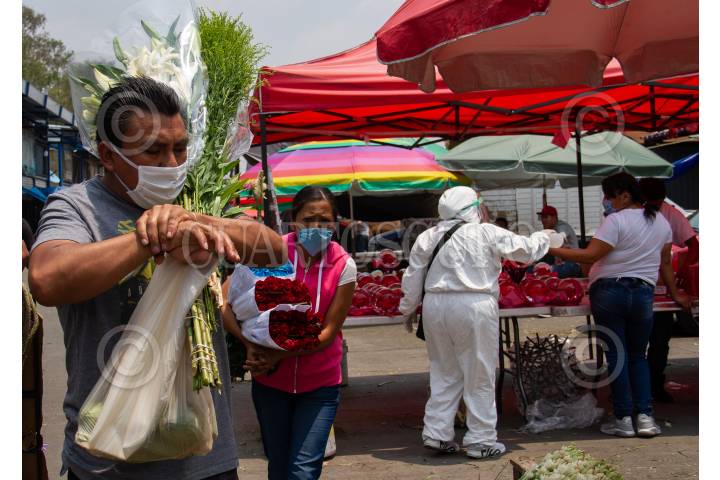 Continúan abiertos algunos locales de flores en la CEDA, personal de la secretaria de Salud realizan recorridos con gel antibacterial y revisando que los visitantes y locatarios estén usando cubrebocas