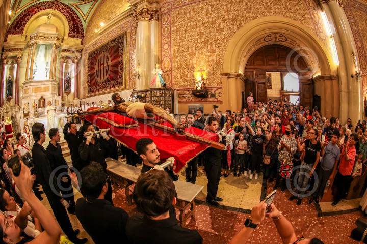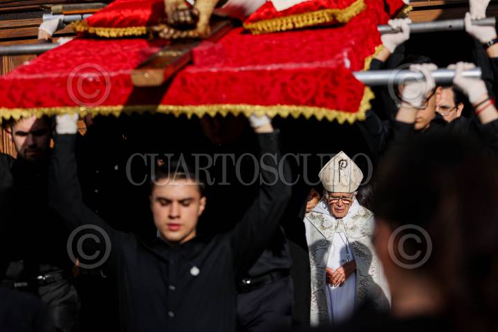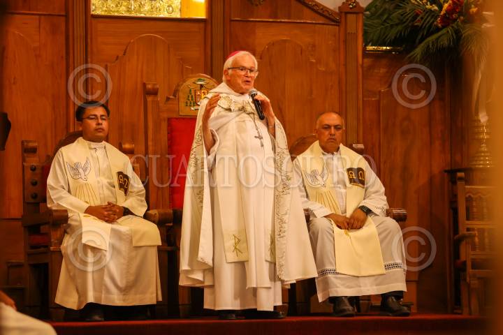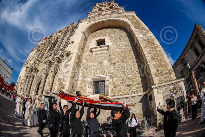 SALTILLO, COAHUILA, 07AGOSTO2024.- La imagen del Santo Cristo fue trasladado de la Catedral de Saltillo hacia la Capilla del Santo Cristo Saltillo, en medio de una procesión religiosa, cientos de feligreses acompañaron al Crucifijo gigante en su recorrido. La misa fue encabezada por el obispo emérito Raúl Vera. FOTO: ALEJANDRO RODRÍGUEZ/CUARTOSCURO.COM