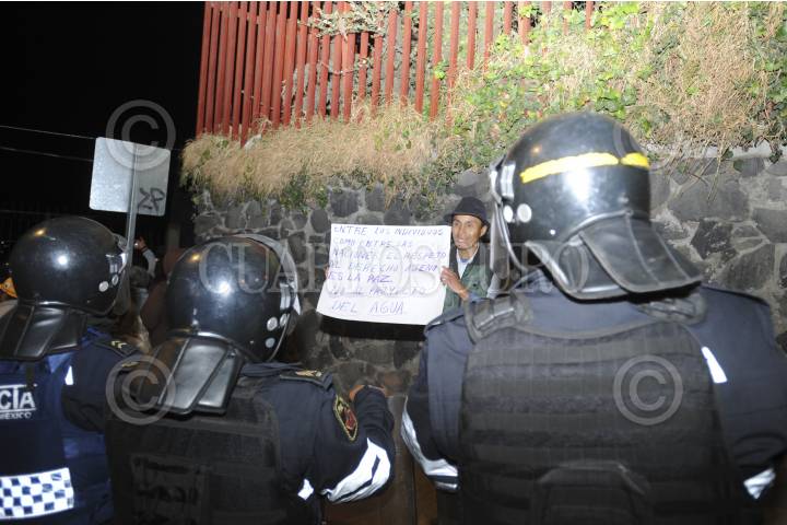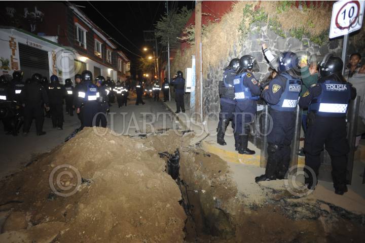 CIUDAD DE MÉXICO, 31MARZO2017.- Habitantes del pueblo de Santo Tomas Ajusco retuvieron a trabajadores de la delegación la noche de este jueves ya que se oponen a la obra de una conexión de tubos para el agua. Granaderos rescataron a los trabajadores y la maquinaria que estaba siendo utilizada para la excavación. FOTO: EDUARDO GALINDO /CUARTOSCURO.COM