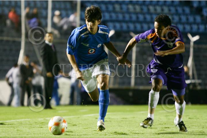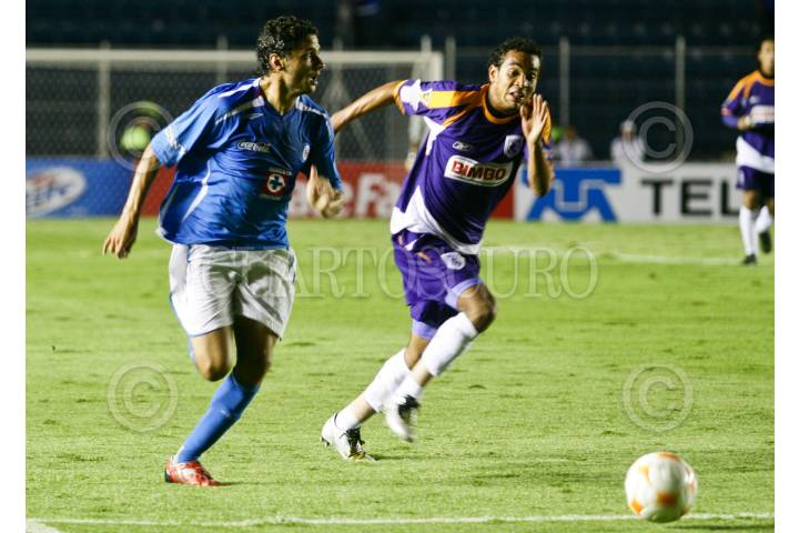 MÉXICO, D.F., 23SEPTIEMBRE2008.- Pablo Daniel Zeballos intenta quitarse la marca del defensa de Saprissa, en el partido que la Máquina de Cruz Azul venció 4-0 al Saprissa de Costa Rica, dentro de la liga de Campeones de la Concacaf, el cual fue disputado en el estadio Azul. FOTO: ISAAC ESQUIVEL/CUARTOSCURO.COM