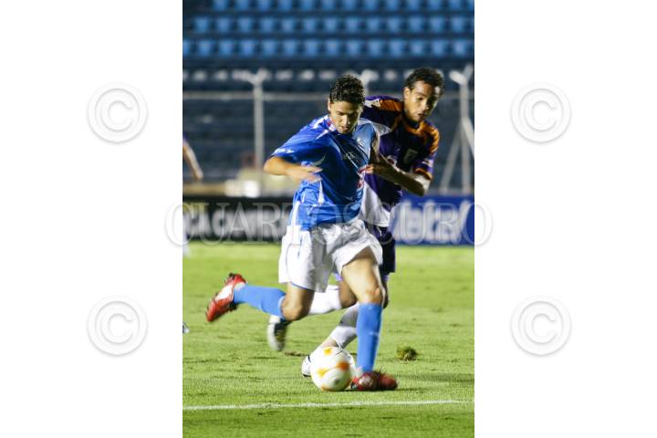 MÉXICO, D.F., 23SEPTIEMBRE2008.- Marcelo Adrián Carrusca conduce el balón, en el partido que la Máquina de Cruz Azul venció 4-0 al Saprissa de Costa Rica, dentro de la liga de Campeones de la Concacaf, el cual fue disputado en el estadio Azul. FOTO: ISAAC ESQUIVEL/CUARTOSCURO.COM