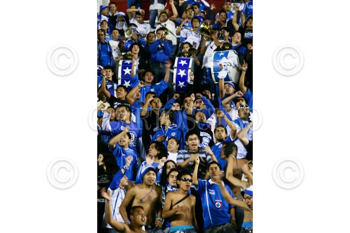 MÉXICO, D.F., 23SEPTIEMBRE2008.- La afición celeste feliz luego de que la Máquina de Cruz Azul venció 4-0 al Saprissa de Costa Rica, dentro de la liga de Campeones de la Concacaf, partido que fue disputado en el estadio Azul. FOTO: ISAAC ESQUIVEL/CUARTOSCURO.COM