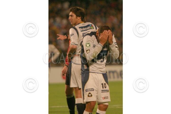 MEXICO, D.F., 11MAYO2005.- Ailton Da Silva y Diego Alonso, jugadores de PUMAS, lamentan su derrota en la final de la Concacaf, luego de perder ante el Saprissa de Costa Rica 3-2, marcador global. FOTO: Iván Stephens/CUARTOSCURO.COM