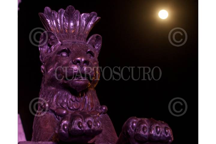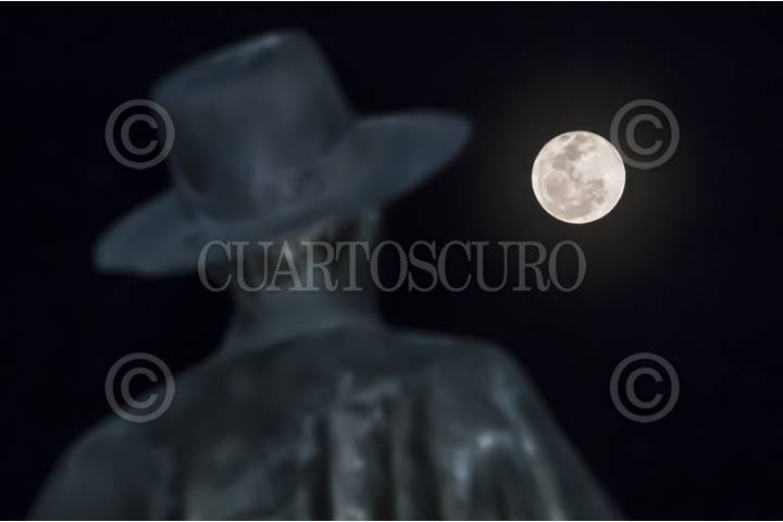 MÉXICO, D.F., 28MARZO2013.- La luna llena de anoche y la estatua "El Sereno" en la glorieta de los Insurgentes. La luna brilla como un gran espejo que refleja la luz del Sol, que se encuentra frente a ella, del otro lado del mundo. FOTO: DIEGO SIMÓN SÁNCHEZ /CUARTOSCURO.COM