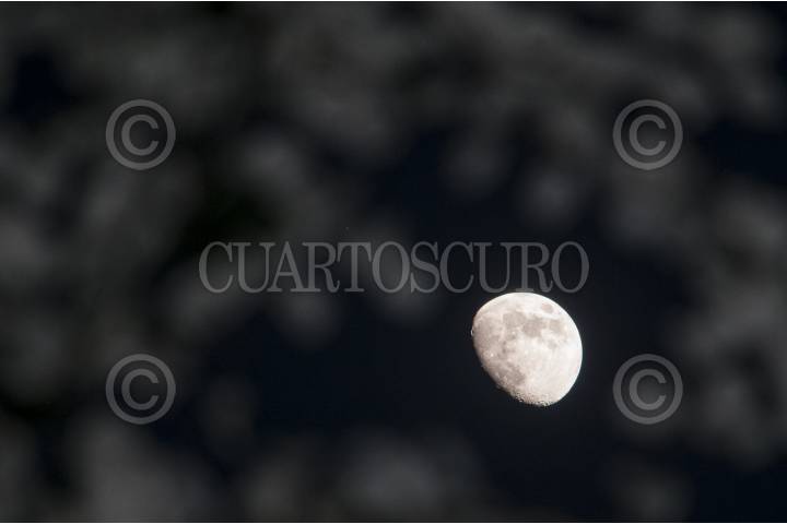 MÉXICO, D.F., 15OCTUBRE2013.- La luna de anoche en su fase creciente se asoma entre las ramas de un árbol. Este viernes 18 de octubre tendrá lugar un eclipse de Luna Penumbral que será visible en varias partes del mundo. FOTO: DIEGO SIMÓN SÁNCHEZ /CUARTOSCURO.COM