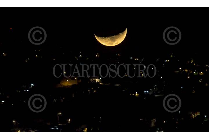 TIJUANA, BAJA CALIFORNIA, 22ENERO2018.- Aspecto de la luna en cuanto creciente cayendo al oeste de la ciudad fronteriza. FOTO: OMAR MARTÍNEZ /CUARTOSCURO.COM