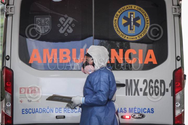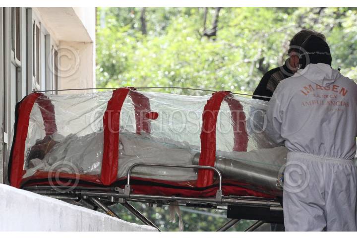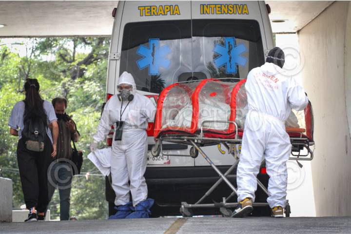 Personal médico ingresa a una persona encapsulada al área de urgencias del Hospital de los Venados.