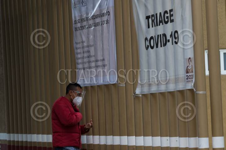 Familiares esperan noticias de sus pacientes afuera del Triage Covid-19 del Hospital general.