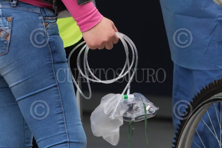 Un hombre de la tercera edad, que llego conectado a un tanque de oxígeno medicinal, es ingresado al Área Covid-19.