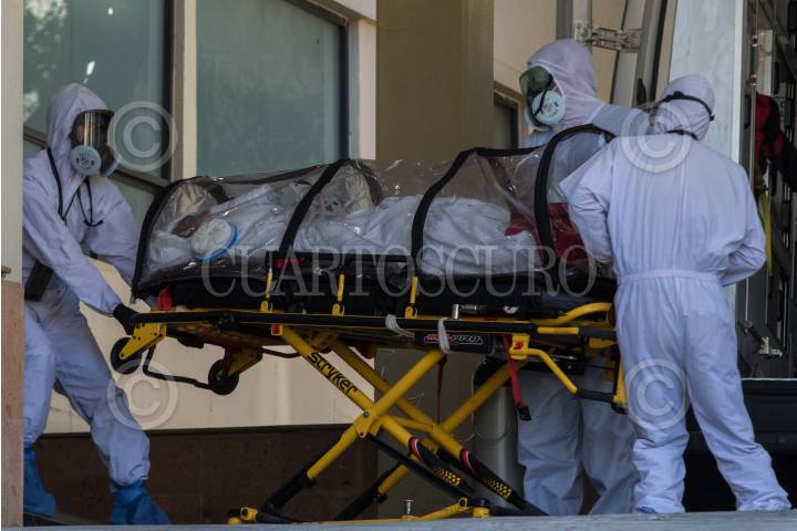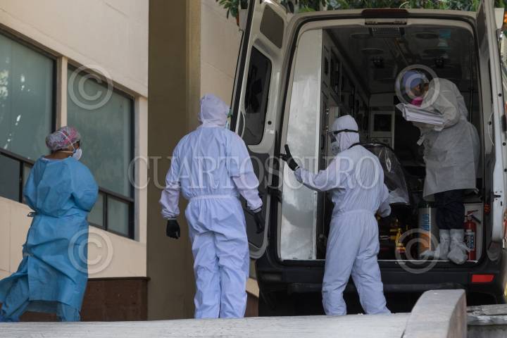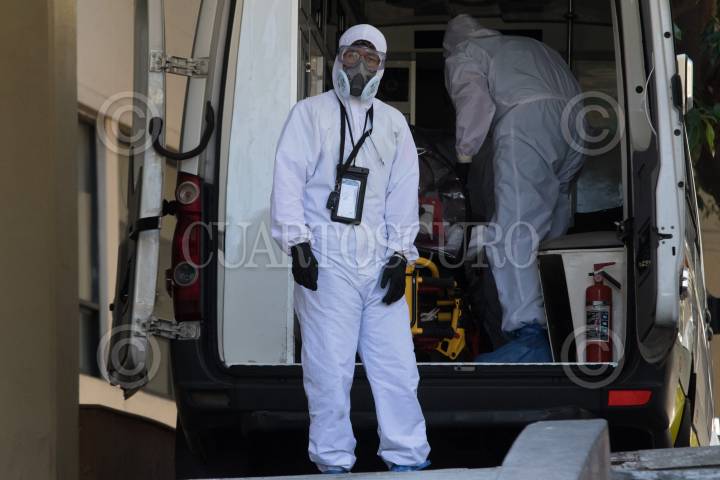 Paramédicos vuelven a trasladar al paciente con síntomas de Covid-19 que momentos antes habían ingresado al Triage Respiratorio del Centro Médico Siglo XXI.