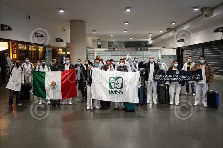 Trabajadores de la salud provenientes de distintos estados de la República como: Quintana Roo, Oaxaca y Chiapas, arribaron a la Terminal 2 del Aeropuerto internacional de la Ciudad de México (AICM) para reforzar la atención en los hospitales de pacientes con covid-19.