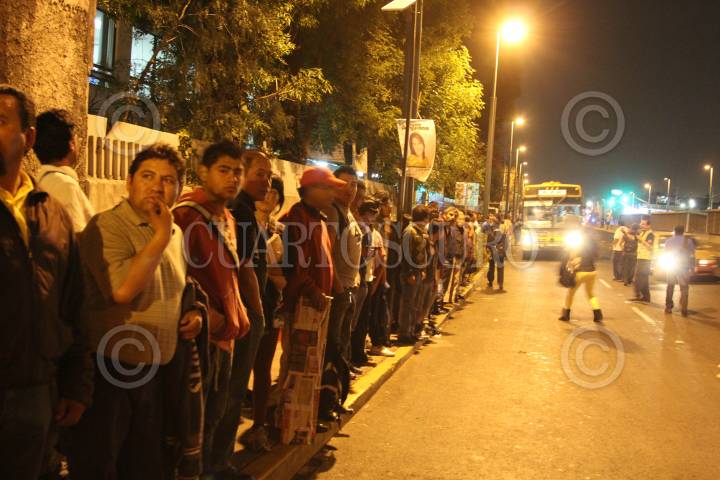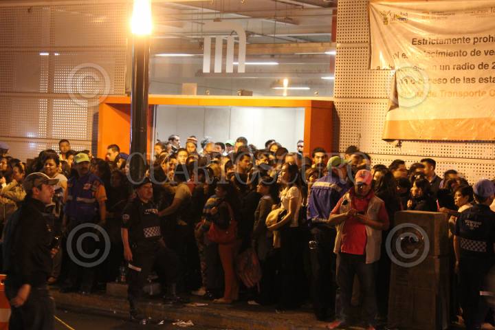 MÉXICO, D.F., 12MARZO2014.- Cientos de personas saturan las salidas del metro Atlalilco para poder tomar uno de los camiones RTP que trasladan a la gente como parte del apoyo emergente al Sistema de Transporte Colectivo Metro luego que este cerrara 12 de sus estaciones argumentando problemas en su construcción. El servicio de los camiones es temporal y gratuito para los cientos de personas que lostrasladan. FOTO: SAÚL LÓPEZ /CUARTOSCURO.COM