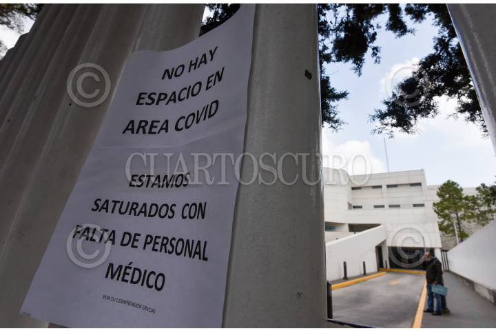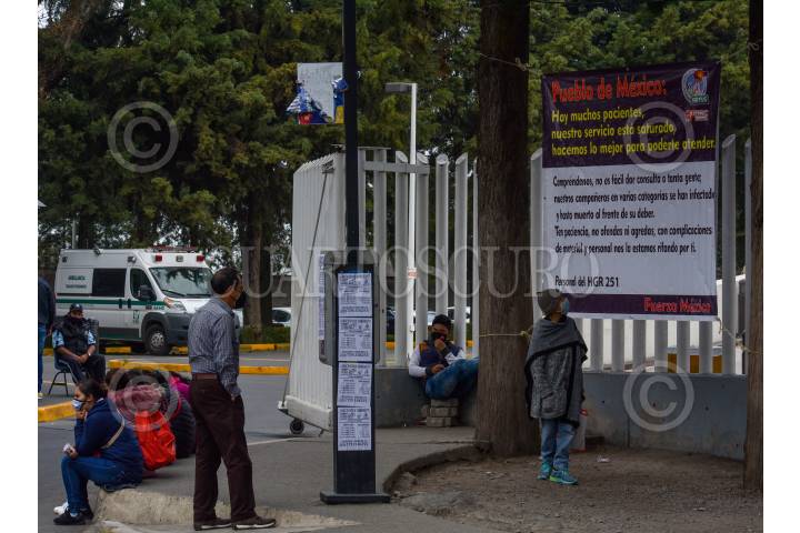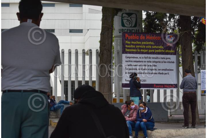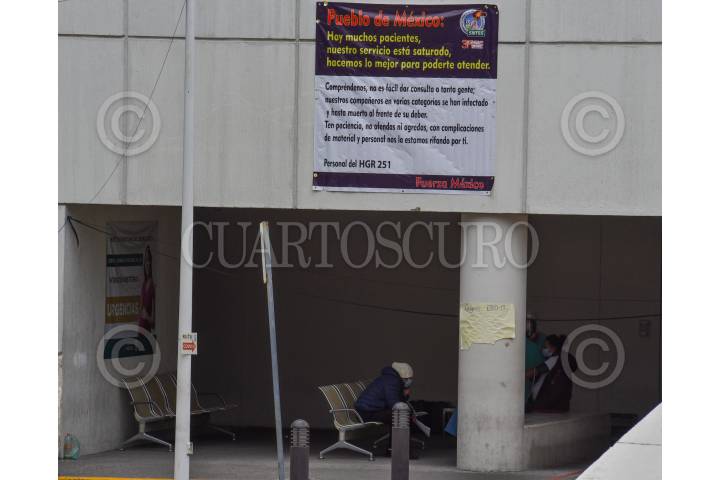 Colocan mantas en el Hospital General Regional No. 251 del IMSS informando a la población que el servicio está saturado en área COVID-19, piden comprensión por parte de familiares y pacientes.